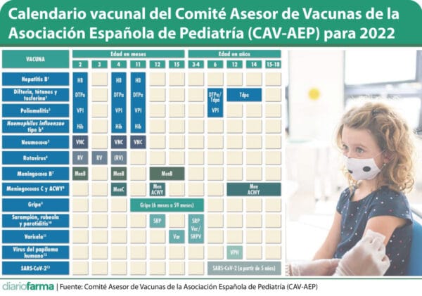 El Comité Asesor de Vacunas de la Asociación Española de Pediatría (CAV-AEP) ha publicado su calendario de vacunación para el año 2022, en el que hacen hincapié en que “más que nunca”, debido a la pandemia, “se ha comprobado el inmenso valor que en términos de salud poseen las vacunas”.