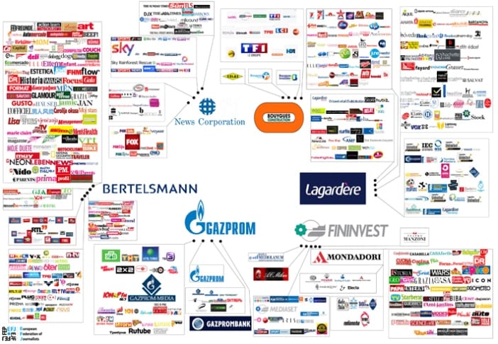 A pesar de la explosión de nuevo medios digitales, con docenas de pequeños proyectos, la gran tendencia es otra: la concentración de la propiedad en pocas manos. Una veintena de grandes conglomerados de comunicación mundiales controlan buena parte de la información y la opinión publicada en el mundo.