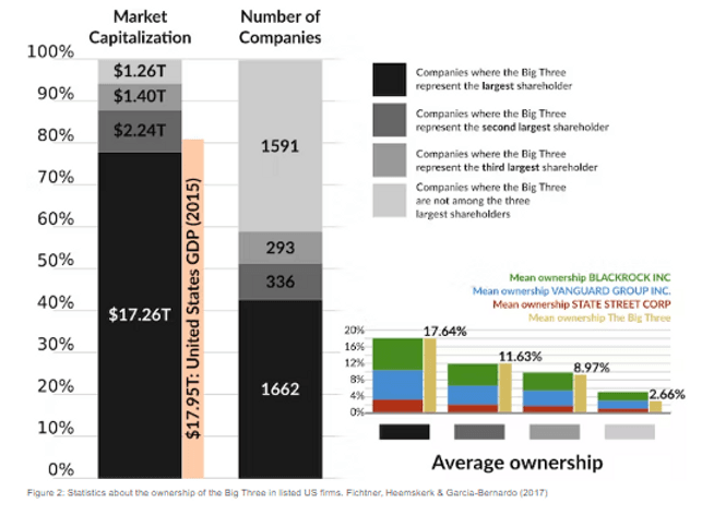 5 años después de haberse escrito este documento los 3 fondos manejan 22 billones de dólares en activos, y son los accionistas mayoritarios en más del 96% de las empresas del S&P500). Eso es más que todos los fondos soberanos juntos y más de tres veces la industria mundial de fondos de cobertura.
